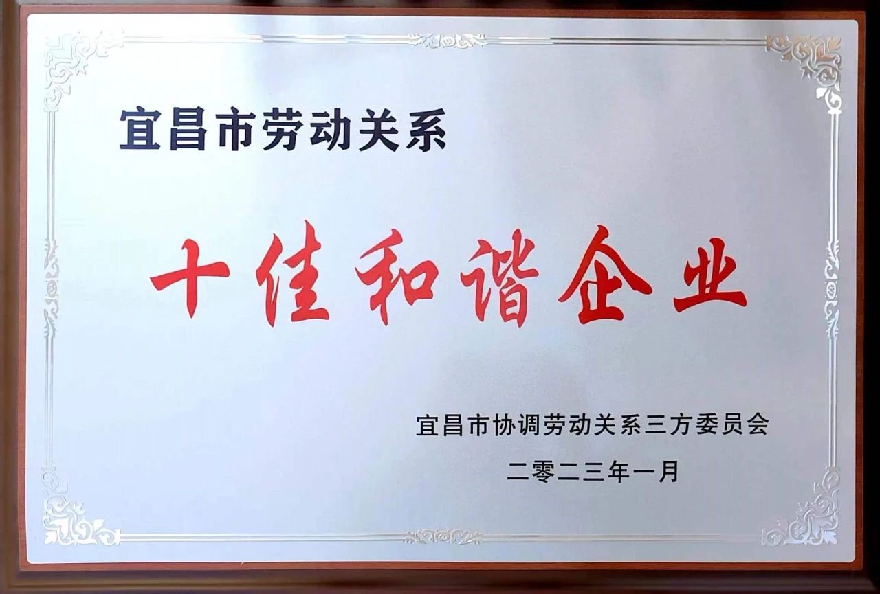 1月7日,宜昌市第三届劳动关系十佳和谐企业评选活动颁奖典礼在宜昌市广电中心一号演播大厅隆重举行。典礼表彰了宜昌市创建“劳动关系十佳和谐企业”及“最美农民工”“技能状元”代表,世界杯官方网页版宜昌有限公司荣获宜昌市第三届“十佳和谐企业”称号。