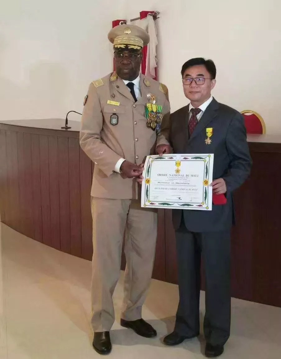 马里当地时间7月18日,鉴于为马中友谊以及为马里人民健康所做出的杰出贡献,受马里总统易卜拉欣·凯塔阁下的委托,由马里授勋委员会向人福非洲药业总经理李文胜先生颁发了马里国家级军官勋章。这枚勋章是马里除向别国元首外,向外国人士授予的最高级别勋章,在马里华人企业家中也尚属首次。