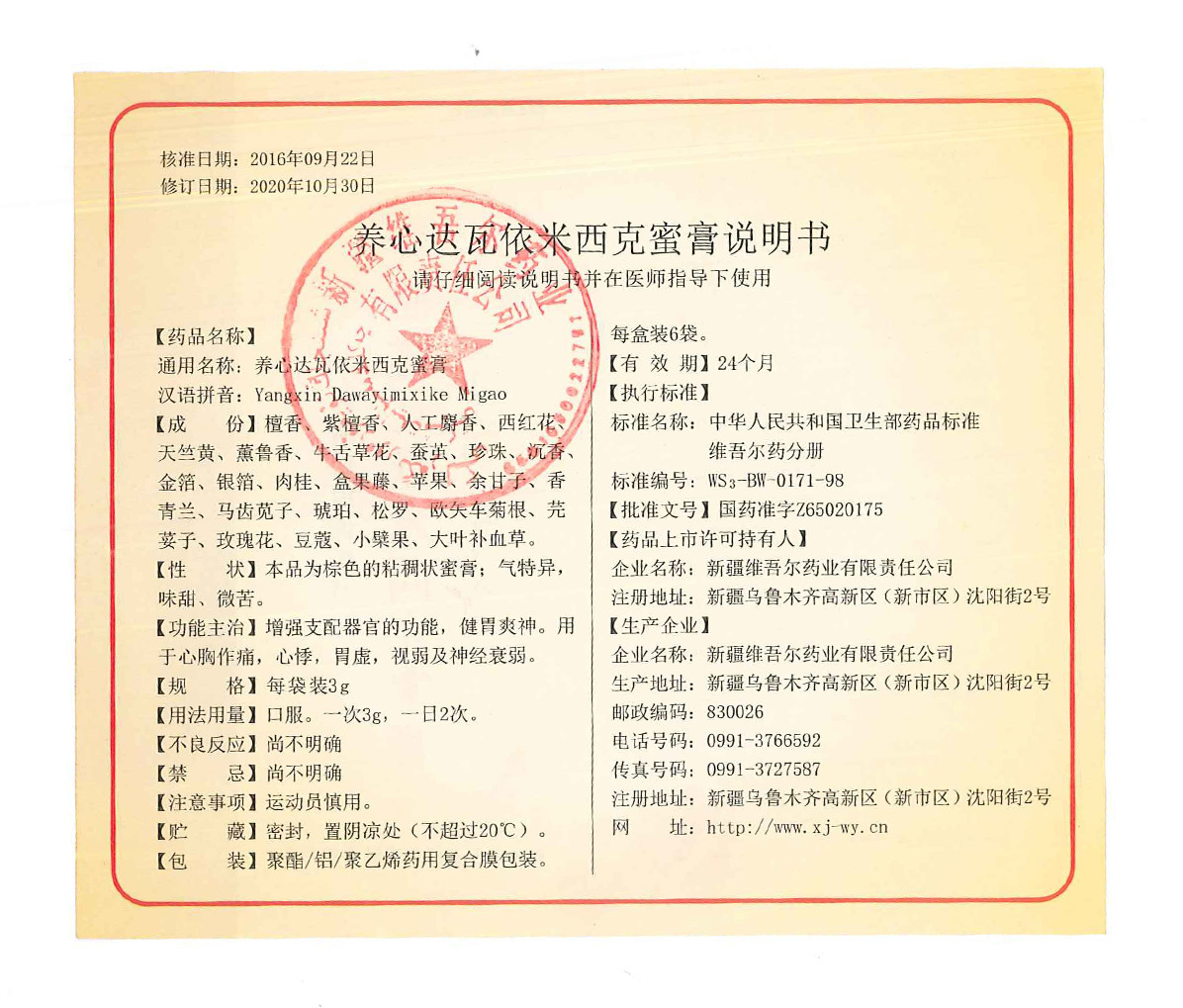 养心达瓦依米西克蜜膏