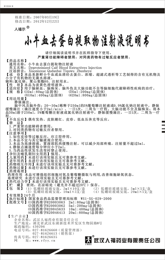 人福尔®小牛血去蛋白提取物注射液