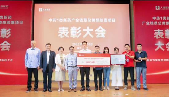 李杰董事长、邓霞飞总裁为广金钱草总黄酮胶囊项目颁发奖牌与奖金