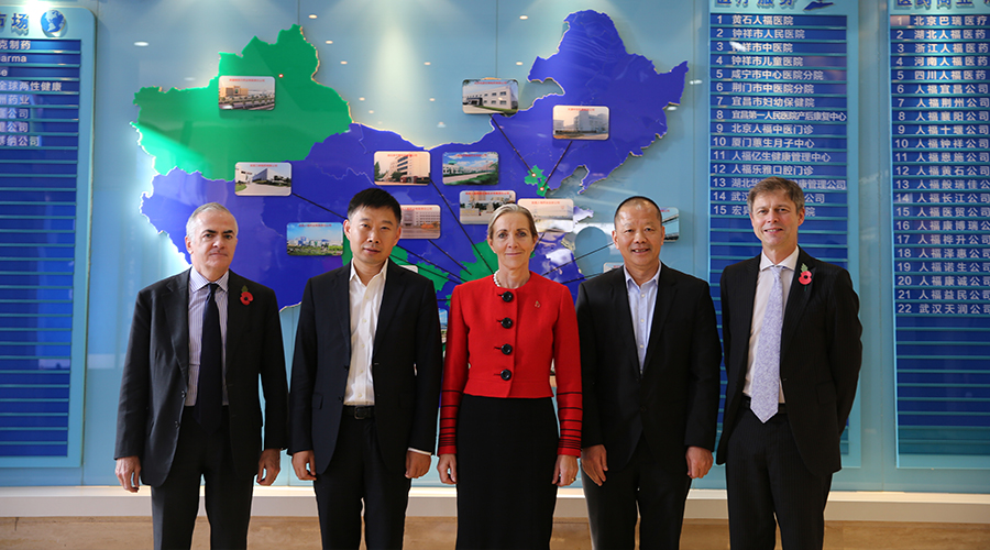 11月9日,英国贸易和出口促进部长罗娜•费尔海德一行访问武汉,莅临世界杯官方网页版集团参观访问,世界杯官方网页版集团董事长王学海、常务副总裁徐华斌、医疗事业总监陈亮予以接待。双方就产业、研发及医疗项目等多领域的合作空间及合作展望进行了深入交流和会谈。