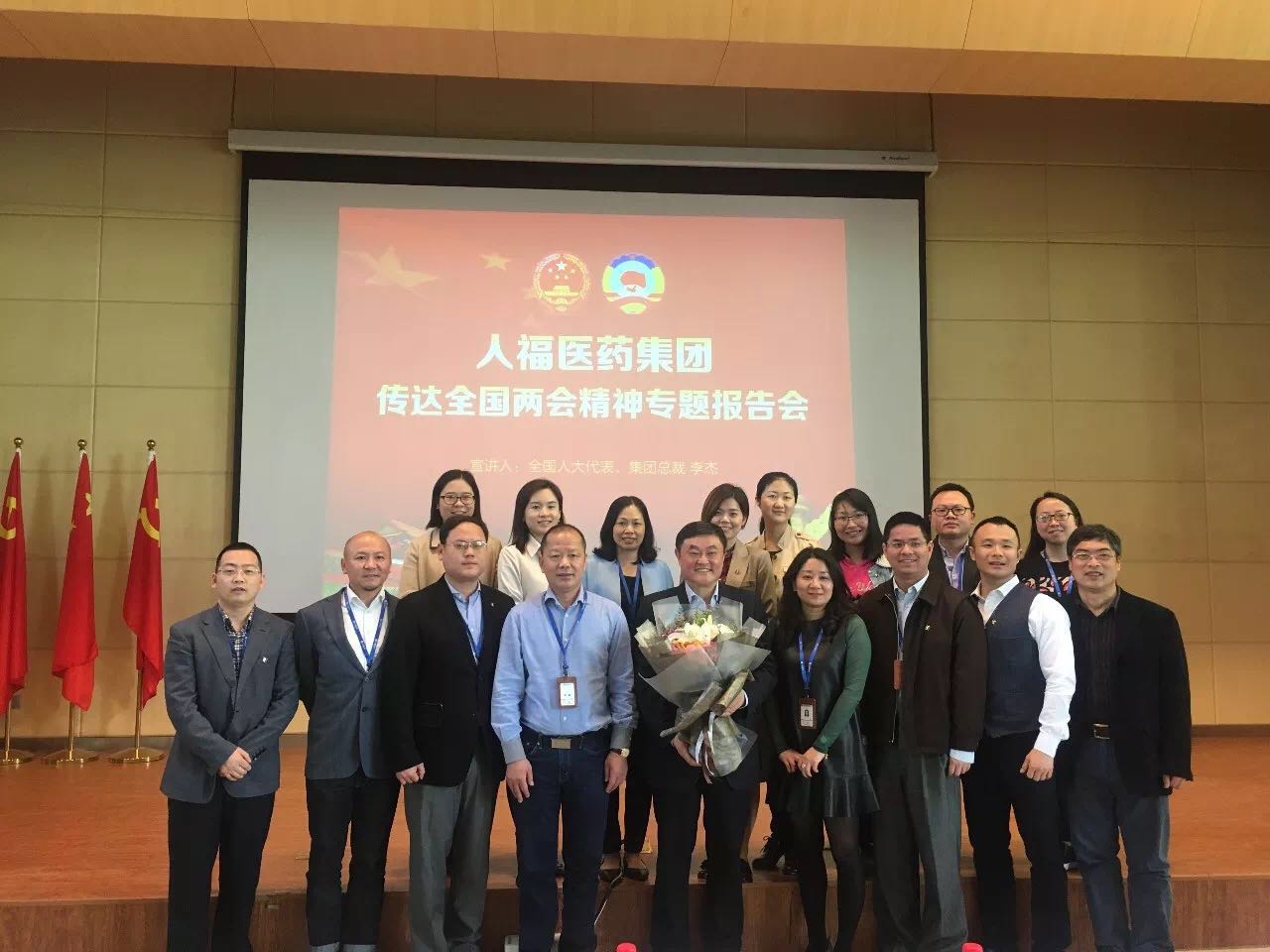 报告会上,李杰总裁分享了他在全国两会履职参会的亲身经历,并就会议概况、会议精神、参会体会向大家进行传达。在十几天会议期间,李杰亲身参与多项国家重大决策的审议和讨论,见证了习近平总书记全票当选国家主席、中央军委主席的重要历史时刻,并就宜昌规划建设、医药行业发展、社会民生等方面内容在代表团和小组会上发言,提出建议十多条。 他认为,在认真学习领会全国两会精神的同时,更重要的是把精神贯彻到企业发展的每项工作中去。李杰总裁要求人福全体员工:以壮士扼腕的决心,一往无前的气概,朝着成为具有持续竞争力的世界级医药企业的目标,快马扬鞭、全力以赴。我们正处在中国大变革、大发展的新时代,不仅要做见证者、受益者,更要作为参与者、推动者,以舍我其谁的勇气和担当,肩负起保护人民生命健康的责任!让我们紧密团结在以习近平总书记为核心的党中央周围,勇担使命,奋往直前,在春风浩荡的新时代,凝聚磅礴力量,书写辉煌篇章! 两会精神 1、关于《宪法修正案》的主要精神 确立科学发展观、习近平新时代中国特色社会主义思想在国家政治和社会生活中的指导地位;把“中国共产党领导是中国特色社会主义最本质的特征”写入宪法第一章《总纲》;修改国家主席任职方面的有关规定;增加有关监察委员会的各项规定。 《宪法修正案》的通过和公布施行,为坚持和维护以习近平同志为核心的党中央权威和集中统一领导,为新时代坚持和发展中国特色社会主义、实现“两个一百年”奋斗目标和中华民族伟大复兴的中国梦,提供了有力宪法保障。 2、关于《监察法》的主要精神 监察法是一部对国家监察工作起统领作用的基础性法律。监察法的审议通过,表明国家监察体制改革取得决定性成果,为构建集中统一、权威高效的国家监察体系奠定了坚实基础。《监察法》出台实现了对国家行使公权力人员监察全覆盖。 宣讲足迹 3月27日下午,宜昌人福药业公司举办传达全国两会精神专题报告会,全国人大代表李杰向公司中高管、员工代表共计400余人作专题报告。湖北日报、湖北卫视、三峡广电、三峡日报等新闻媒体参会并对活动进行全面报道。 3月28日,李杰受邀分别在宜昌高新区、宜昌市卫计委向党员干部传达两会精神,高新区管委会主任汪元程、宜昌市卫计委主任张琼分别主持了报告会。 3月30日,世界杯官方网页版集团总部,隆重召开“世界杯官方网页版集团传达全国两会精神专题报告会”。全国人大代表、世界杯官方网页版集团总裁李杰为公司全员宣讲两会精神。 接下来,李杰还将在武汉工程大学、宜昌市一医院等单位,向大家深入传达全国两会精神。 两会履职风采 中共十九届中央政治局常委,十三届全国人大常委会委员长栗战书与全国人大代表李杰亲切握手 全国人大代表李杰、于清明探讨医药企业如何提升核心竞争力 全国人大代表李杰接受媒体采访
