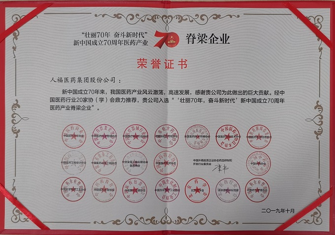 10月8日至10日,“2019中国医药企业家科学家投资家大会暨新中国成立70周年医药产业发展成就展”在北京举行。大会同期举行了“中国医药上市公司竞争力颁奖典礼”“中国医药创新企业100强发布”“壮丽70年,奋斗新时代”新中国医药70年纪念晚会、海内外医药创新公司投融资路演等多项活动。世界杯官方网页版集团党委副书记、副总裁、董事会秘书李前伦应邀代表集团参会。会上,世界杯官方网页版集团获“壮丽70年 奋斗新时代”新中国成立70周年医药产业脊梁企业、“中国医药创新企业100强(第19位)”两项殊荣。