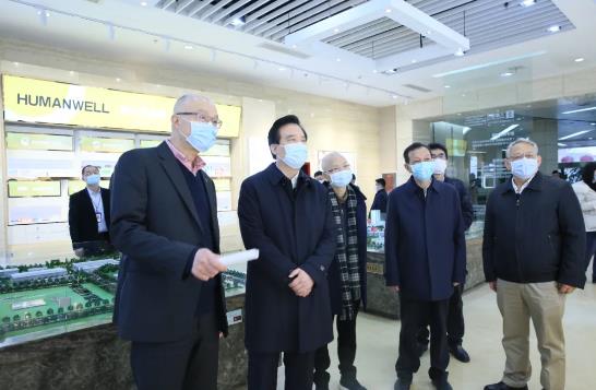 在世界杯官方网页版集团总部,邓霞飞向黄楚平汇报了集团在2020年面对特殊的考验,助力打赢战疫、战洪、战贫三场硬仗的情况,介绍了集团坚定“做医药细分市场领导者”,以研发创新为先导,布局“7+5”产品线的发展战略和产业布局。作为湖北省、武汉市两级新冠肺炎疫情防控指挥部物资保障平台,世界杯官方网页版集团疫情期间累计为全省提供口罩、防护服、护目镜、消杀产品等6000多万件,同时捐款捐物总价值逾4800多万元;武汉入汛以来,世界杯官方网页版集团始终关注防汛一线,为驻扎在江堤的花山街道、关东街道380名党员干部和防汛人员送去了防暑防晒、防蚊虫叮咬等药品;2020年,世界杯官方网页版集团对口帮扶的3个村、自愿结对帮扶的35个村近千名贫困村民全部脱贫,集团旗下宜昌人福药业荣获全国“万企帮万村”精准扶贫行动先进民营企业称号。